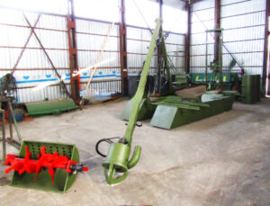 поворотная стрела: – шнек c приводом от гидромотора D 500 мм, L 750 мм, 200 об/мин. – блок для плотного грунта 200 об/мин. – грейферный захват |